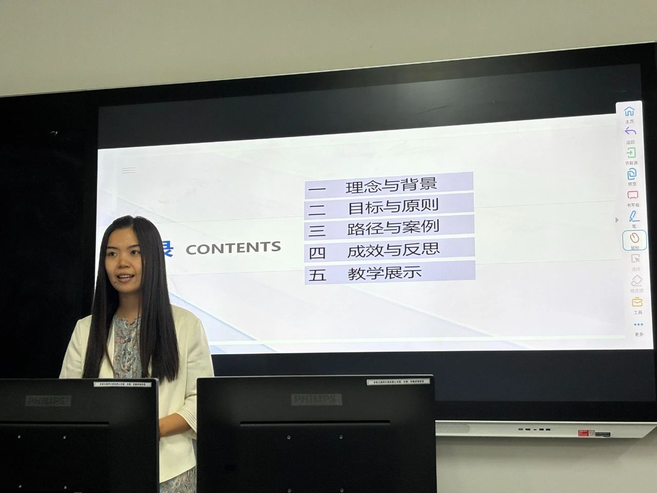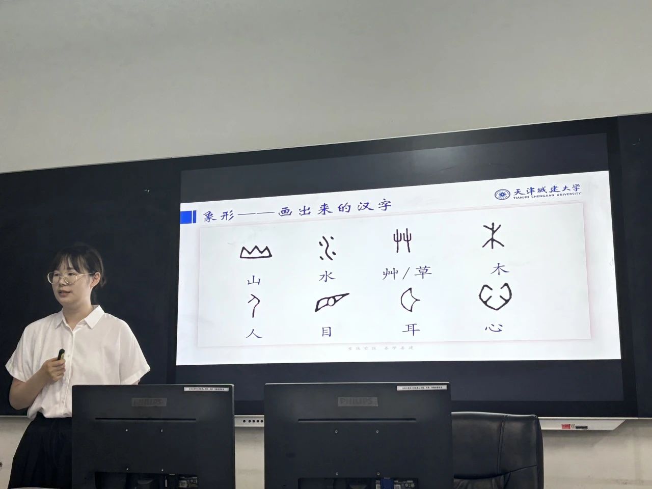 参赛教师围绕大学英语、科技翻译、汉英翻译、大学日语和古代汉语课程等思政教学创新,以C919国产大飞机投入商用、中国古代人工智能思想和现代人工智能发展、汉字字形演变等主题和切入点进行了精彩展示和教学分享。经过评委们综合评价,学院推荐孔俊文等3组教师团队参加天津市大学英语课程思政教学大赛,推荐马金铃老师参加京津冀蒙课程思政教学大赛校级选拔赛。