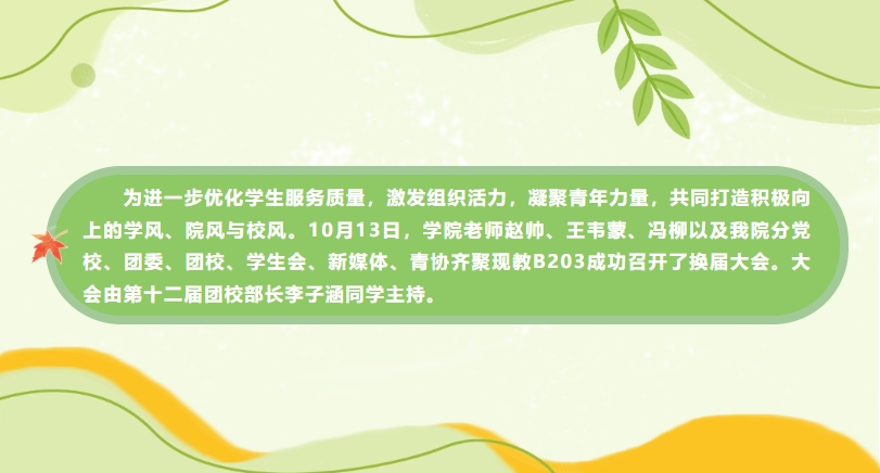 [Youth.乐鱼leyu(中国)]我院成功举办学生组织换届大会