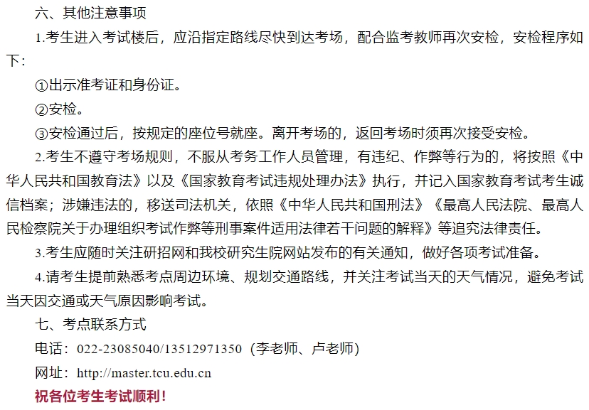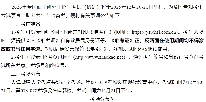 2026年全国硕士研究生招生考试(初试)天津城建大学(1243)考点公告