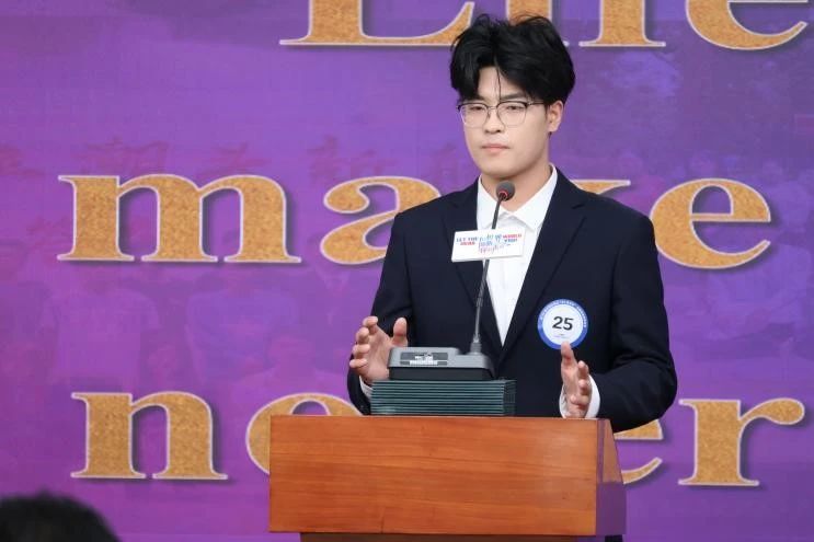 本届比赛定题演讲主题为Living within and beyond the 21st century。喻鹏飞以AI科技作为切入点和主要内容,通过描述科幻电影场景引入,以提出问题、解决问题的结构呈现。讲述了AI当下的运用场景、存在的问题以及解决AI先行问题的方式,提出了人类与AI之间的相互赋能。演讲抓住了人工智能的优势与劣势,同时为人与AI共同进步提供了青年大学生的思路,体现了跨学科融合的重要性。