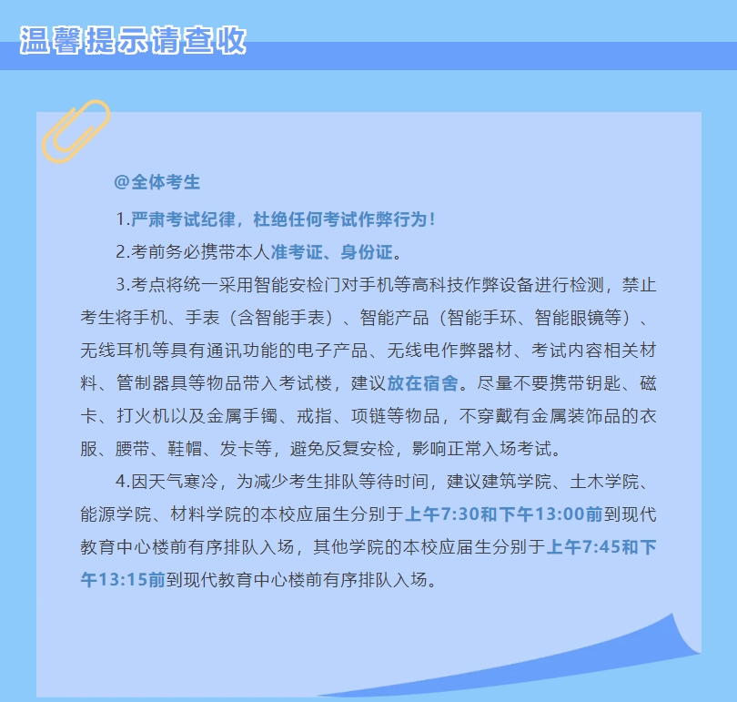 天津城建大学2026年全国硕士研究生招生考试(初试)本校应届考生温馨提示
