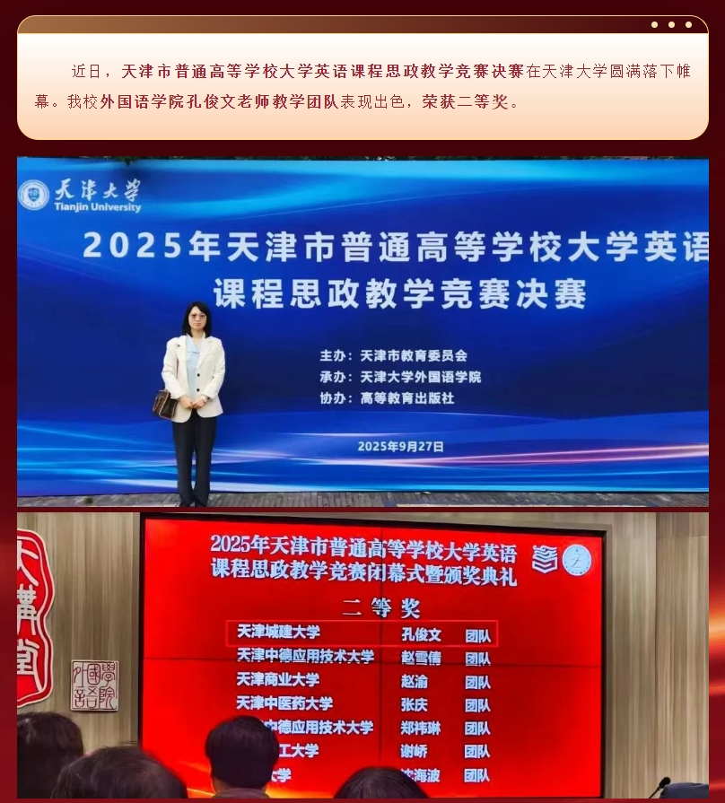 天城大教师在天津市普通高等学校大学英语课程思政教学竞赛中斩获佳绩